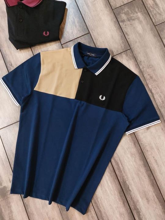 Home T-Shirts Fred Perry Blue Polo Premium Collar Neck T-shirt F3463-BU